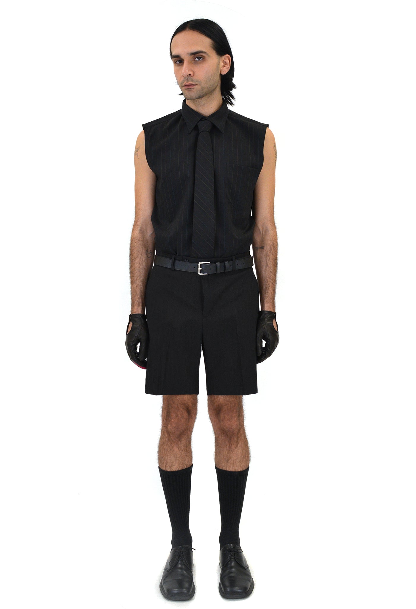 - Nima wears Ernest W. Baker pinstripe shirt, tie, and driving gloves
