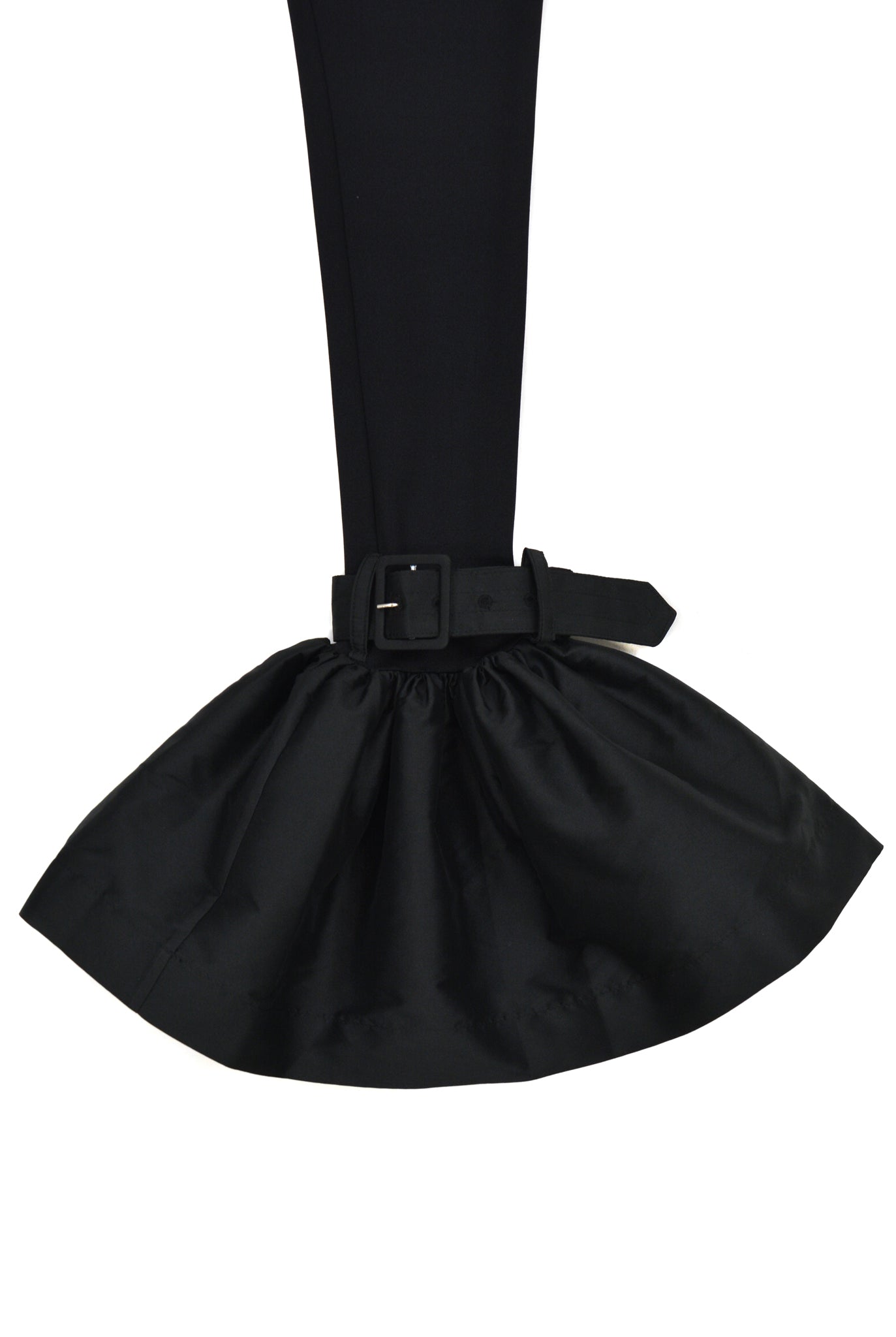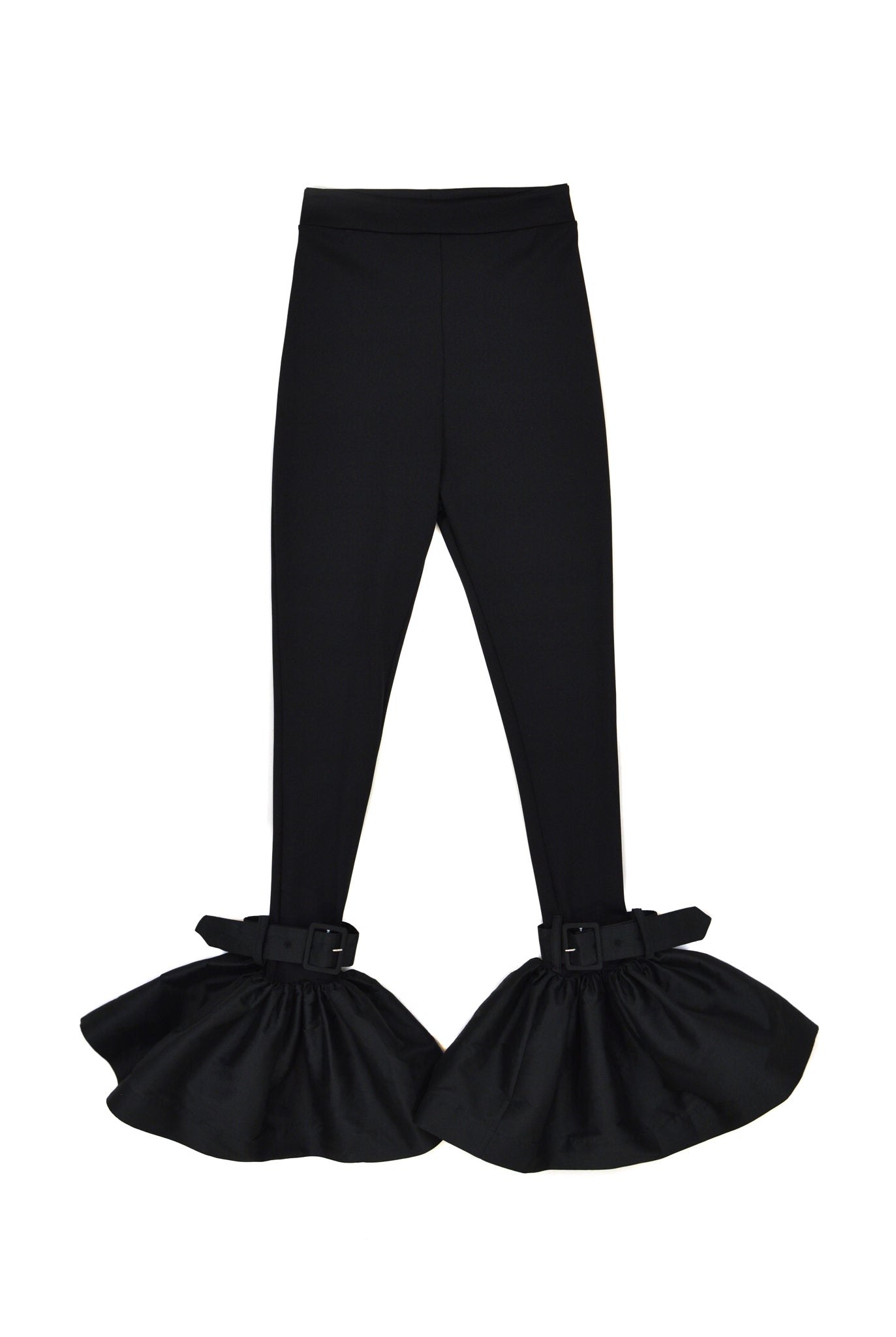 High waisted leggings with taffeta bell bottoms.